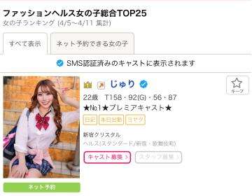 ?東京店舗型ヘルス女の子ランキング1位?